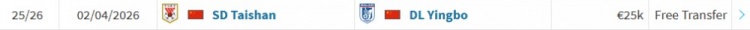 华体会网页版-德转显示泰山球员毕津浩已加盟大连英博,方式为自由转会