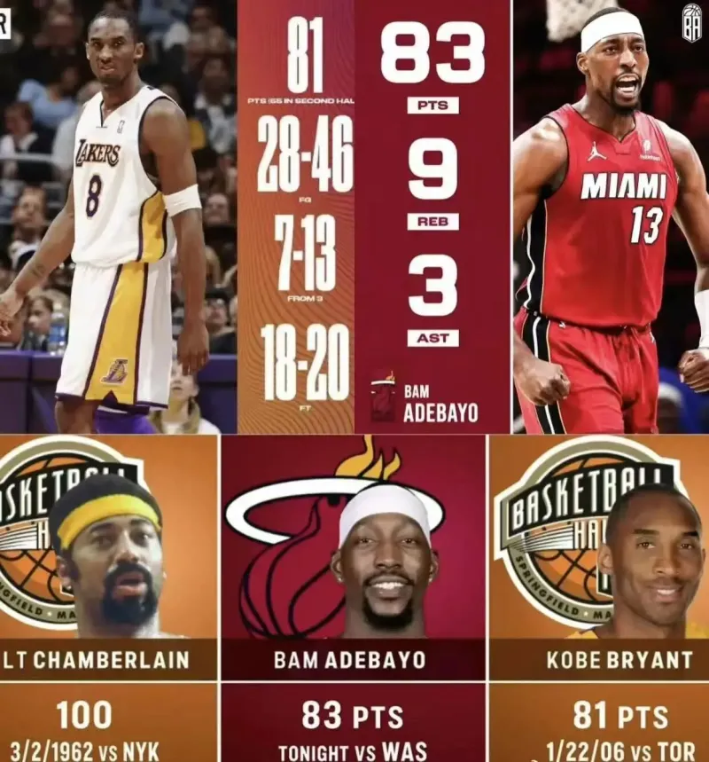 一个堪称疯狂的时刻,阿德巴约用83分的神迹,向已经长眠于地下的科比和张伯伦,致以最崇高的问候。