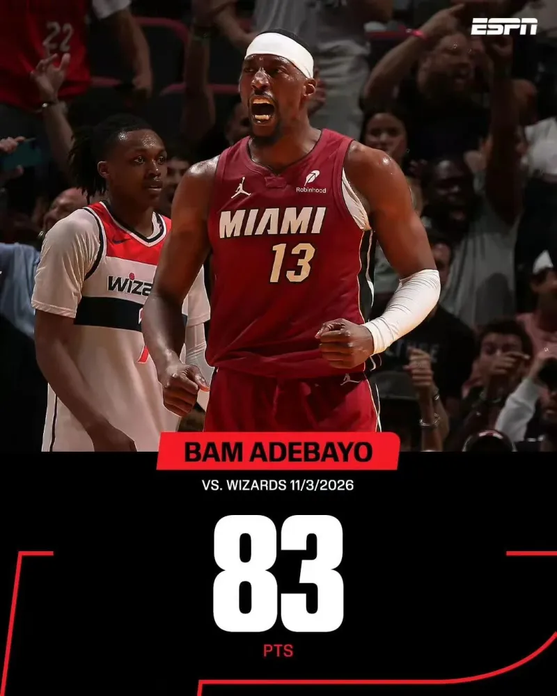 我们讨论了20年的话题,球迷们也曾为谁最有可能打破纪录争论不休,多数巨星的名字都曾出现,可唯独巴姆·阿德巴约没有人会想到。