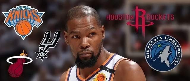 目前,真正与太阳谈过杜兰特交易的球队有五支,分别是太阳、火箭、马刺、森林狼和猛龙。